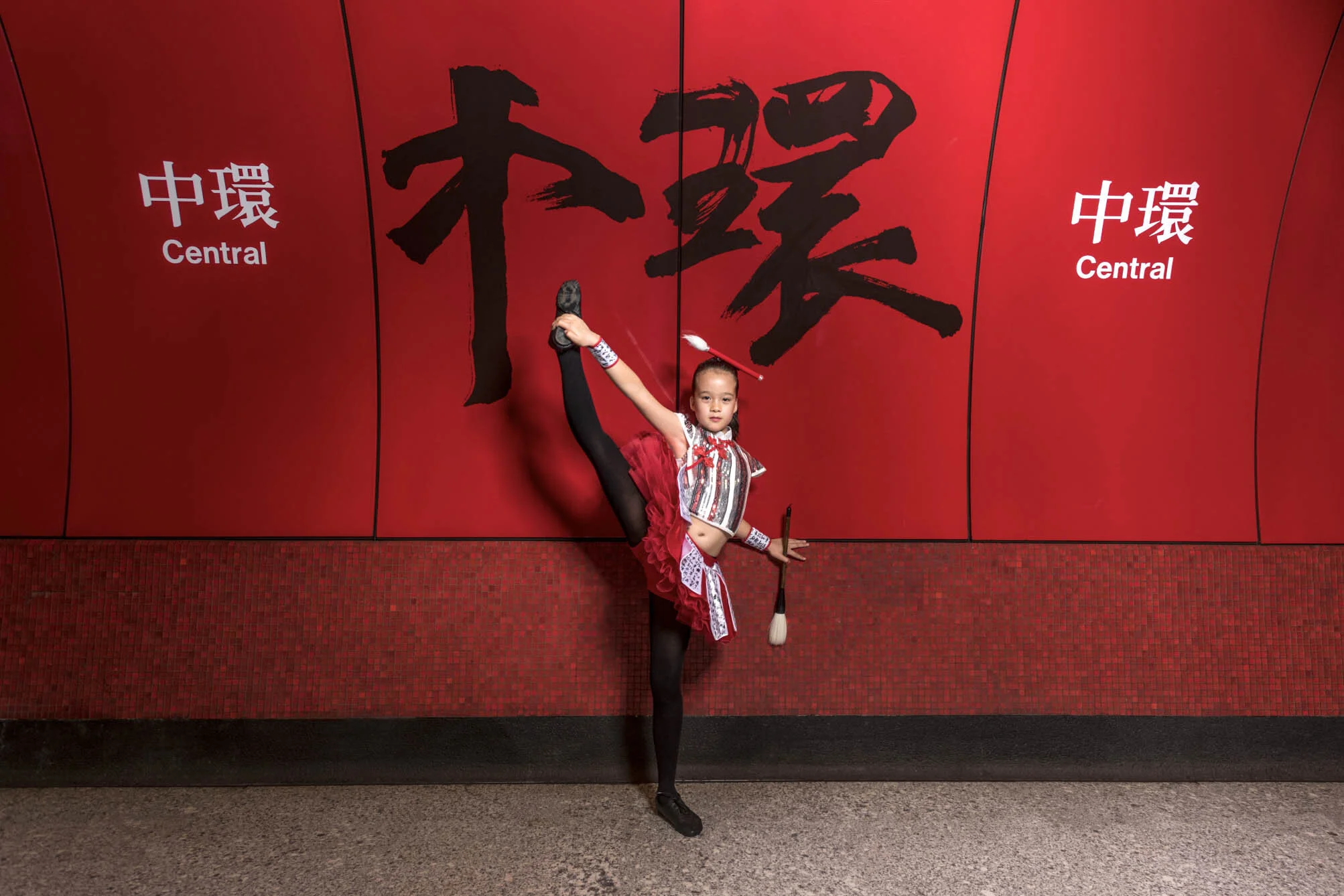 港鐵站的書法字出自港鐵退休建築師區傑棠先生之手,別樹一幟的字體早已成為港鐵一大特色。相中舞者的「書法大師」服裝顏色鮮麗,巧妙結合中西元素,頌揚傳統書法藝術之餘亦不失時代感。